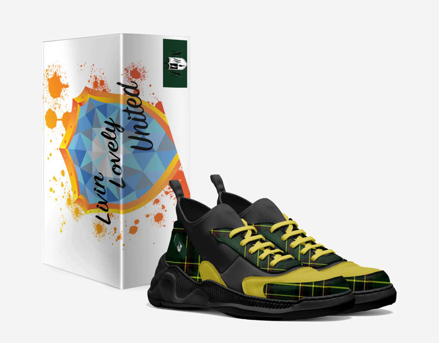 Men and women luxury style sneakers handmade with Italian leather. Designer sneakers with an urban look and a casual touch of Scottish green textile and canary suede.